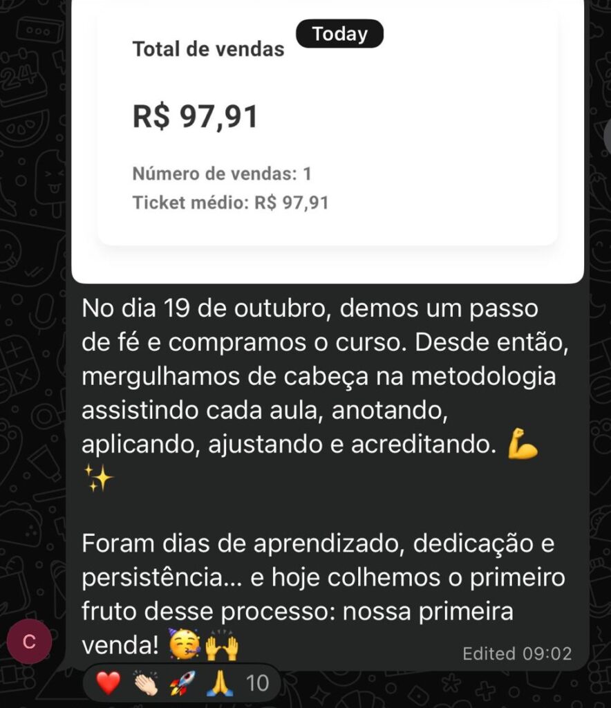 Alguns alunos geraram as primeiras vendas ainda na semana do workshop. Outros, levaram algumas semanas pra estruturar tudo e ativar.